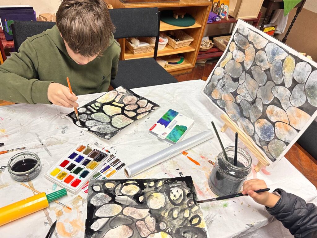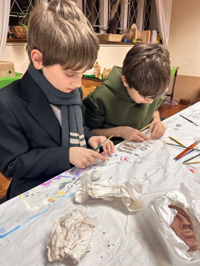 In one of our lessons, we explored the shape and texture of river stones not only through traditional sketches but also through hands-on modeling. This approach allows students to gain a deeper understanding of volume, proportions, and the unique characteristics of objects, as well as to feel their weight and form.